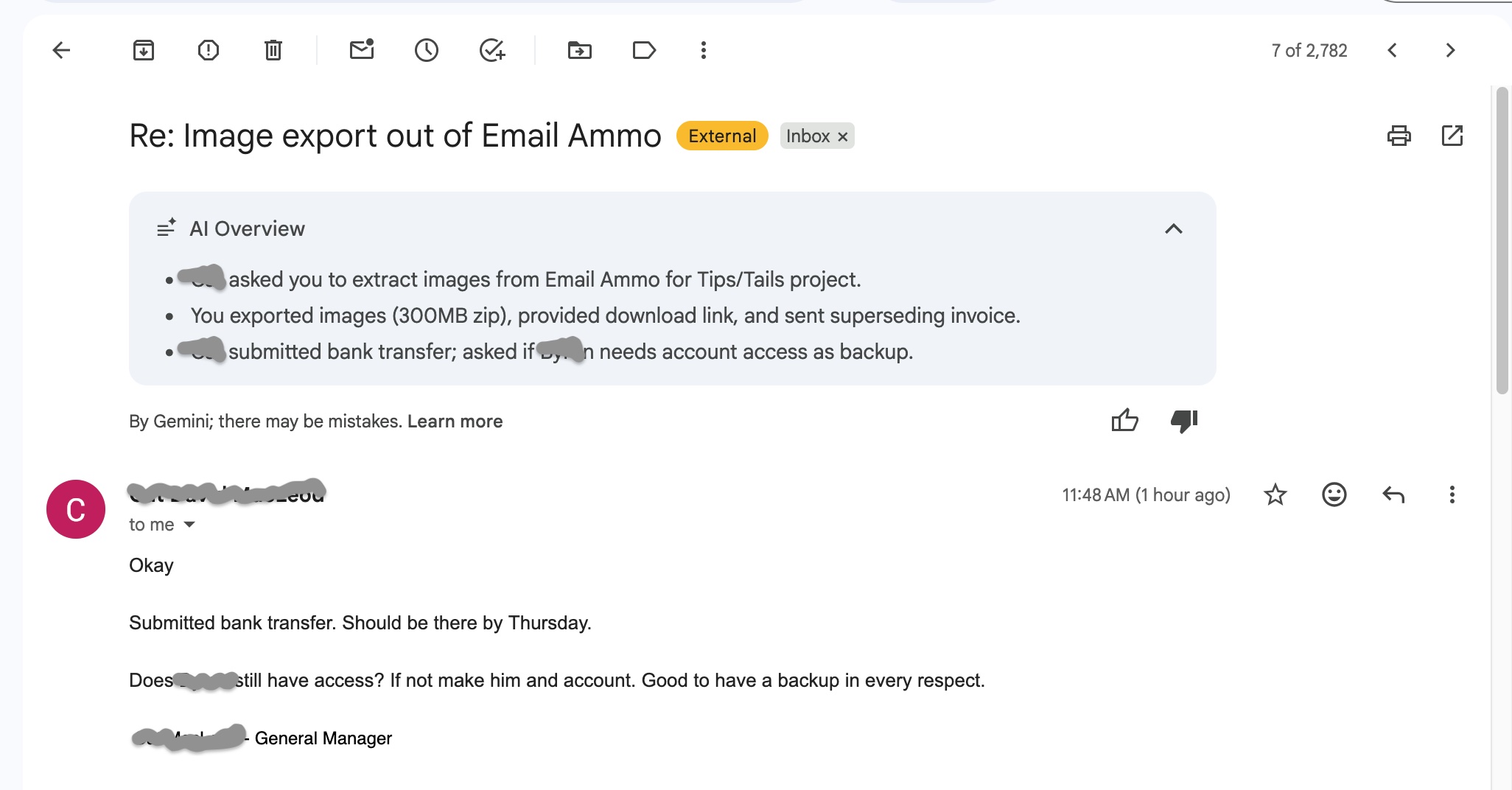 Well, this is a new one. Today my gmail has started moving my emails out of the way to prioritize giving space to "AI Overviews" telling me what the email says. The summaries are longer than the actual email.