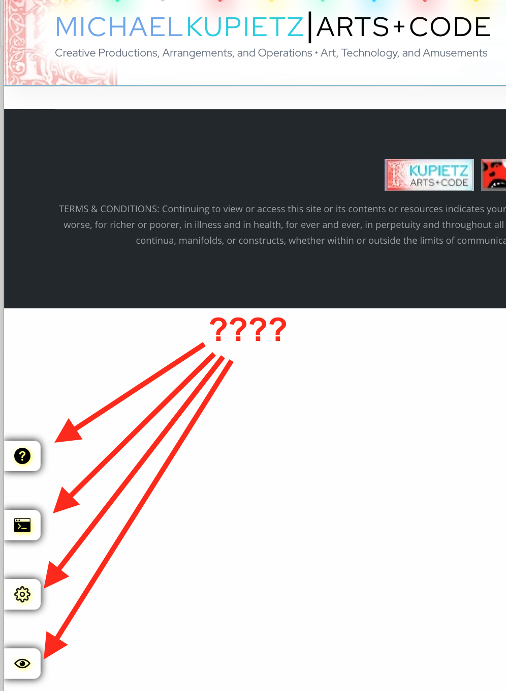 So, I had a crazy problem. You'll notice that there's various draggable elements on this site... such as the "Kupietools" plugin tabs seen at left, the occasional "the site is being worked on right now" notices that pop up, etc. You can drag them around with your mouse.